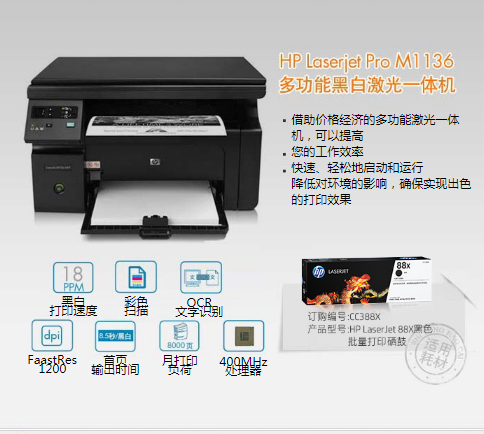 耗材容量:CC388A:1500页